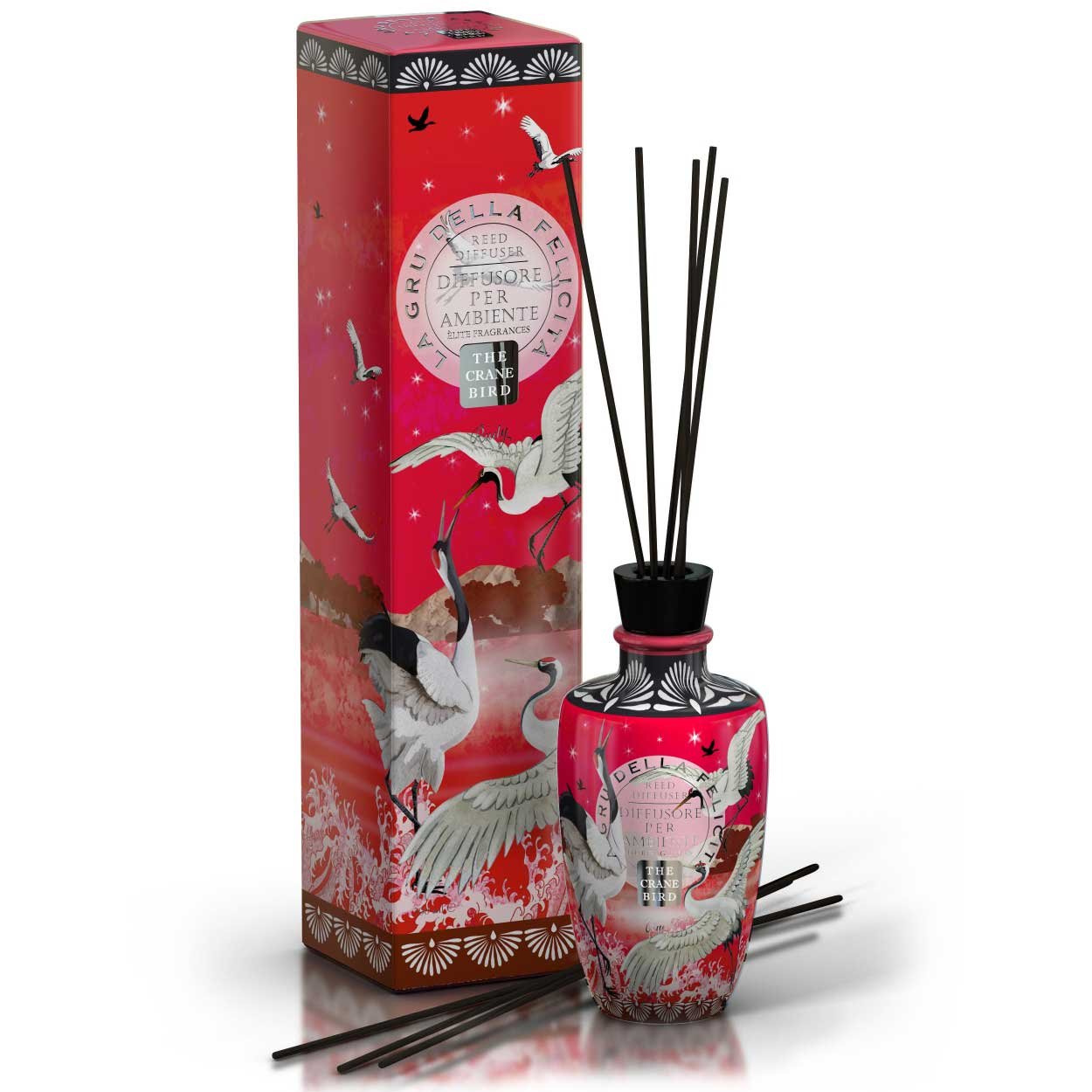 Prabangus namų kvapų difuzorius, įkvėptas grakščiosios gervės – meilės, sėkmės ir harmonijos simbolio. Kvape dera kedro žievė, kraujų oranžas, japoniška iris ir sandalmedis su šiltomis rudojo cukraus natomis. Elegantiškai papuoštas, subtiliai kvepia ir ilgai išlieka.