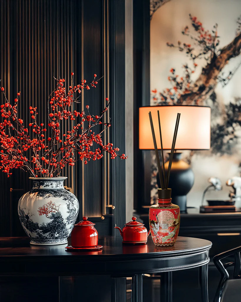 Prabangiais ornamentais dekoruotas namų kvapų difuzorius džiugina aromatine kompozicija, kuri jautriai jungia gaivą, lengvumą ir šilumą. Viršutinės natos – kedro žievės gyvastinga gaiva ir kraujų oranžo putojantis vaisiškumas – pažadina pojūčius ir suteikia akimirksnio šviesos. Širdyje susilieja švelniai šokantys japoniškos iris ir bijūno žiedai, suteikiantys kvapui grakštumo ir subtilios elegancijos.